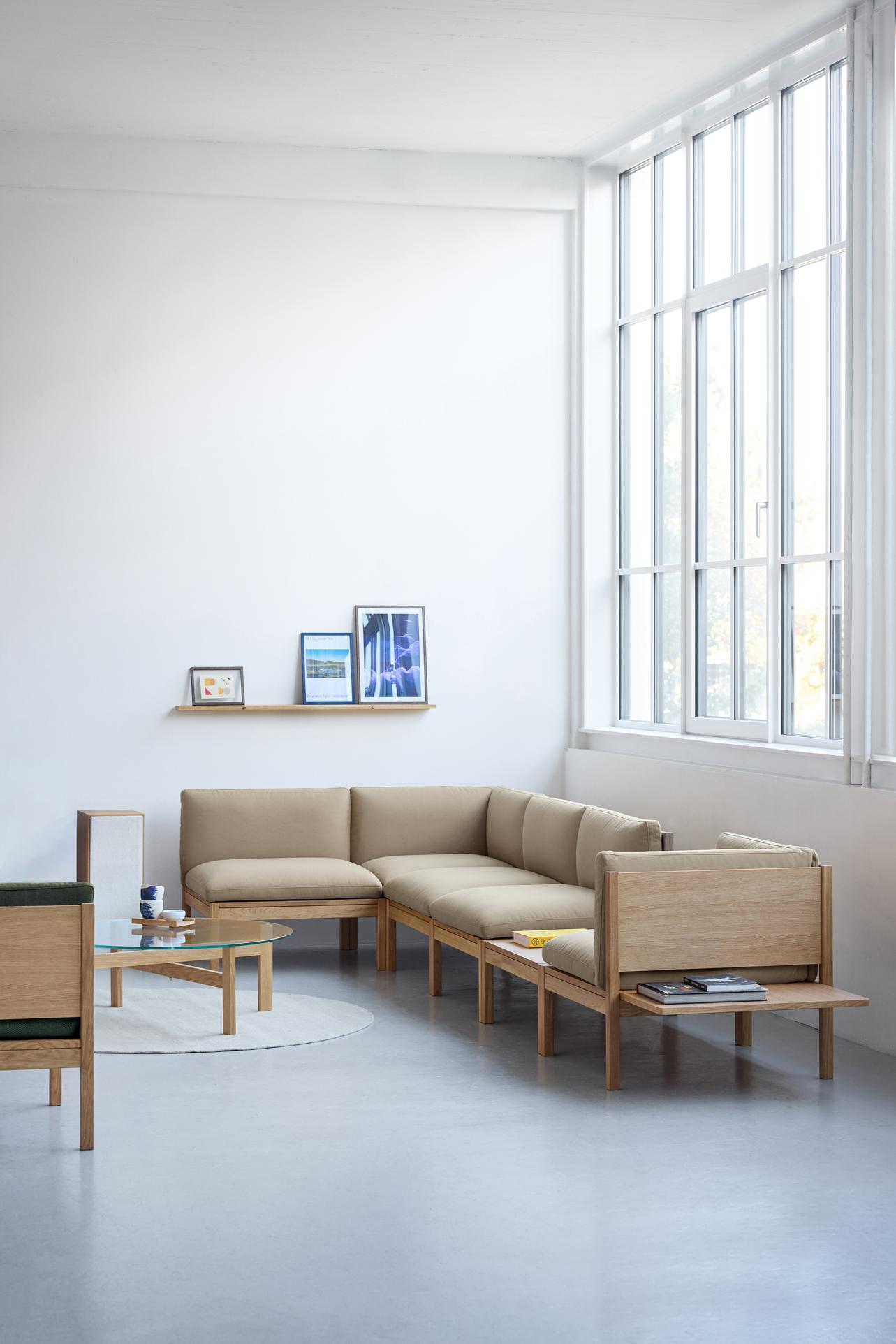 Materialer: FSC-certificeret olie- og voksbehandlet eg & puder i Kvadrat tekstil